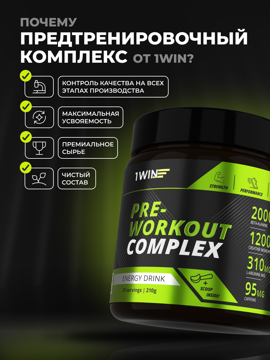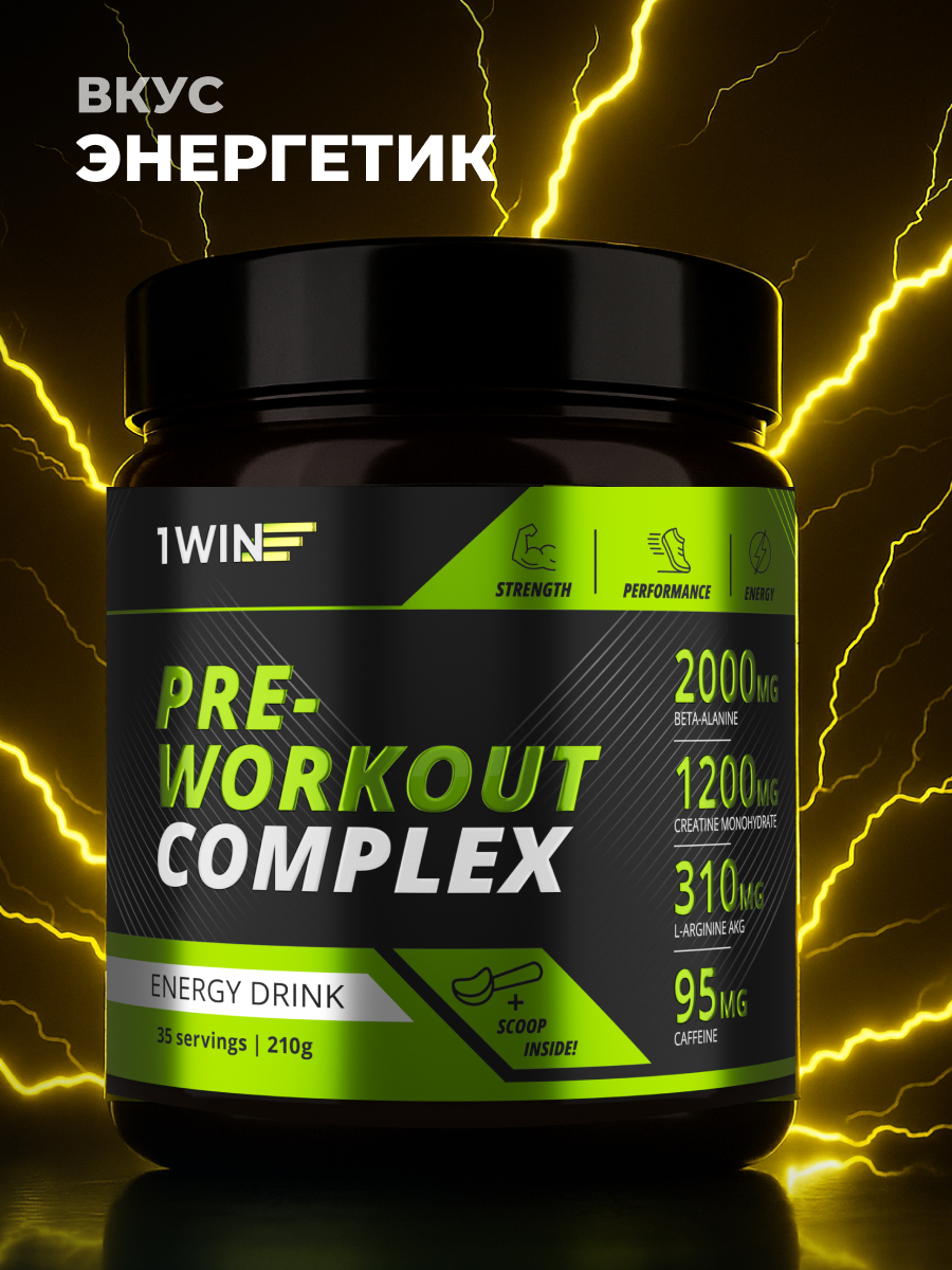 1WIN / Предтренировочный комплекс, Pre-workout, Вкус Энергетик, 35 порций