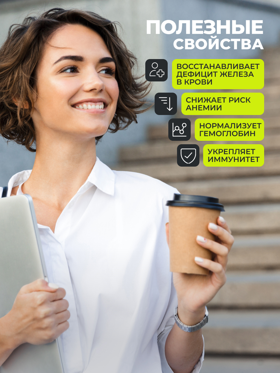 БАД хелат железа в капсулах улучшает транспортировку кислорода к клеткам, поддерживает питание тканей, органов и систем организма. Прием бисглицината железа с витаминами С и B3 способствует нормализации гемоглобина в крови, снижает риск анемии, повышает сопротивляемость организма к простудным заболеваниям, восполняет дефицит железа при потерях крови.