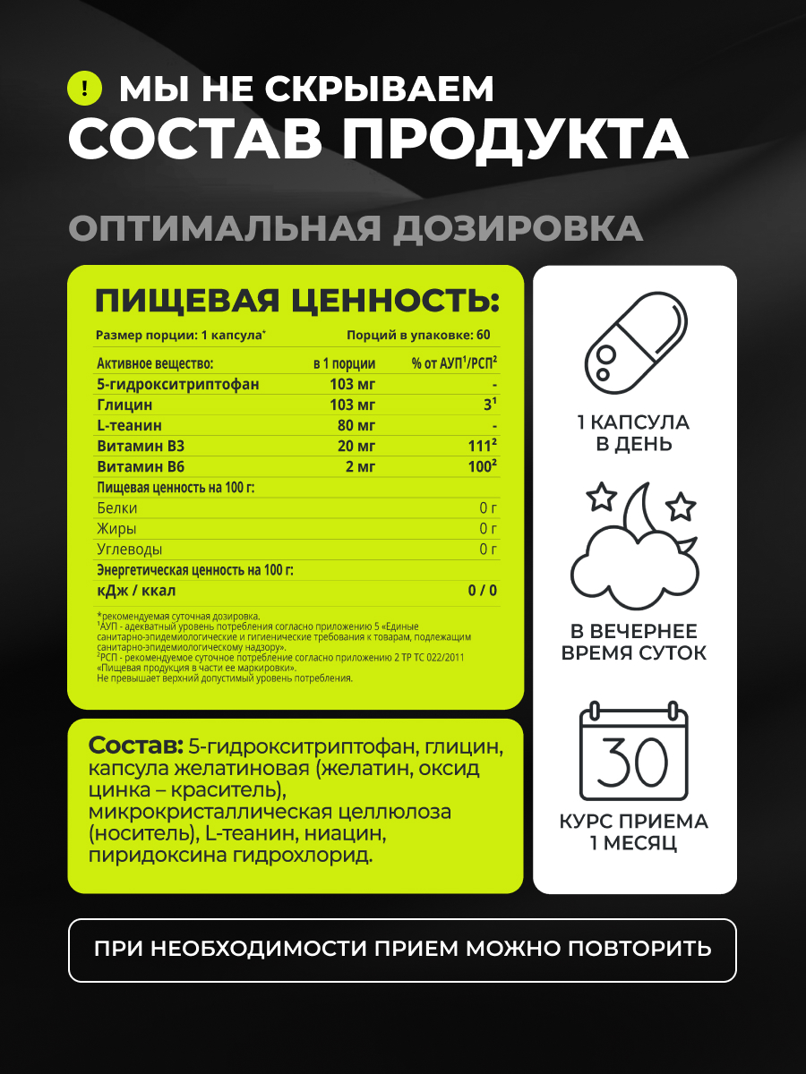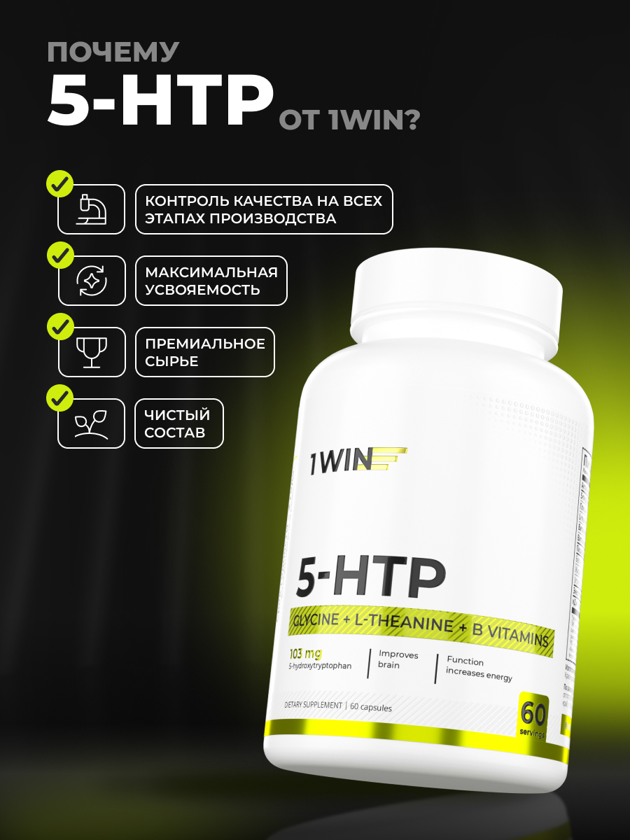 1WIN / 5-HTP с глицином, l-теанином и витаминами группы B, 60 капсул