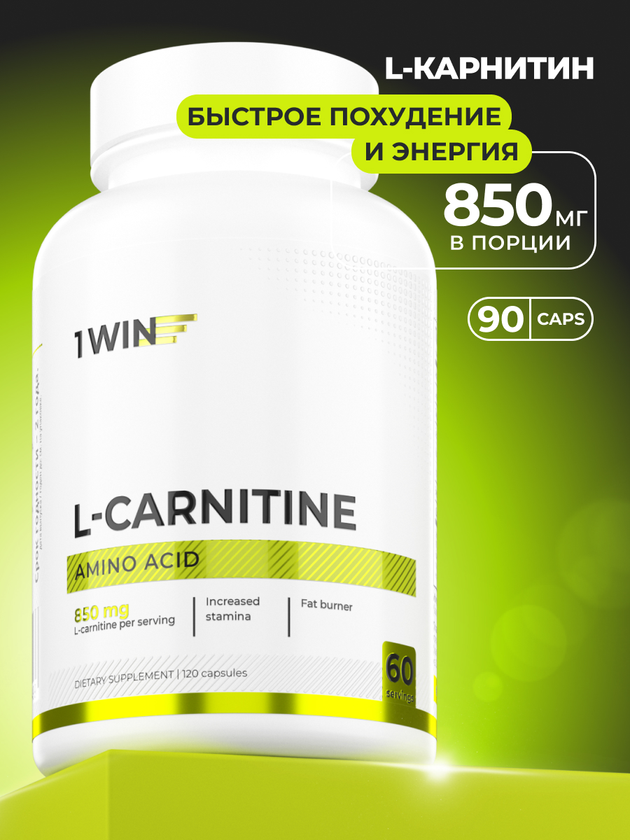 1WIN / L-карнитин / L-carnitine / Похудение /Сушка/ Жиросжигатель, 120 капсул