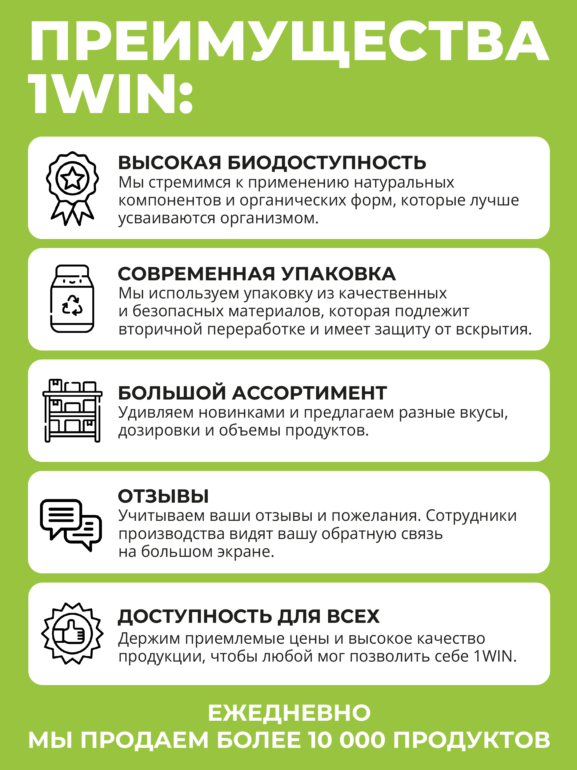 Креатин 1WIN является одним из самых популярных среди спортсменов благодаря своей высокой эффективности и отсутствию ярко выраженного вкуса. Он способствует увеличению мышечной массы, повышению силы и выносливости.
