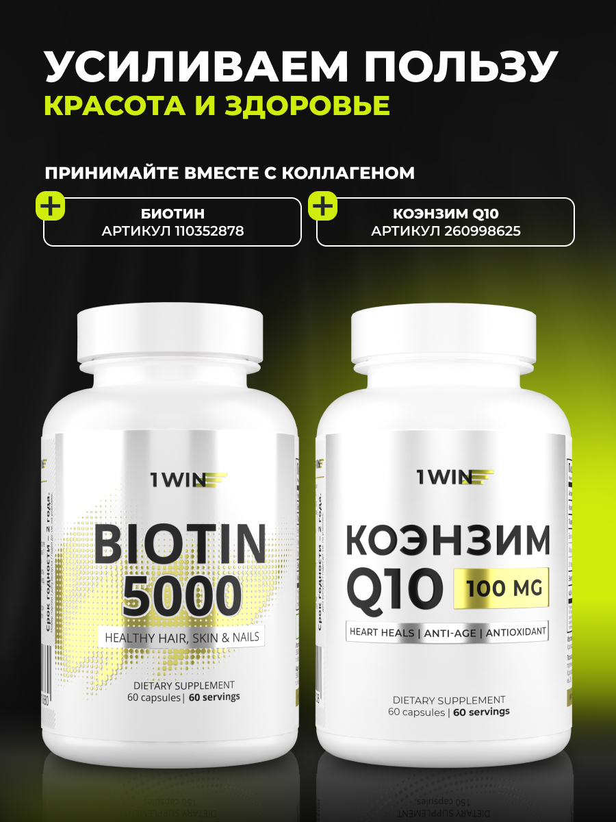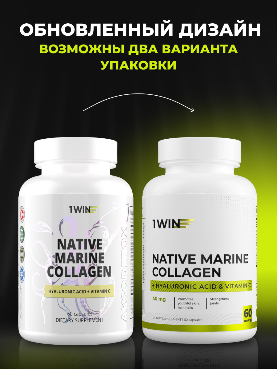 1WIN / Нативный морской Коллаген + Гиалуроновая кислота + Витамин С, 60 капсул
