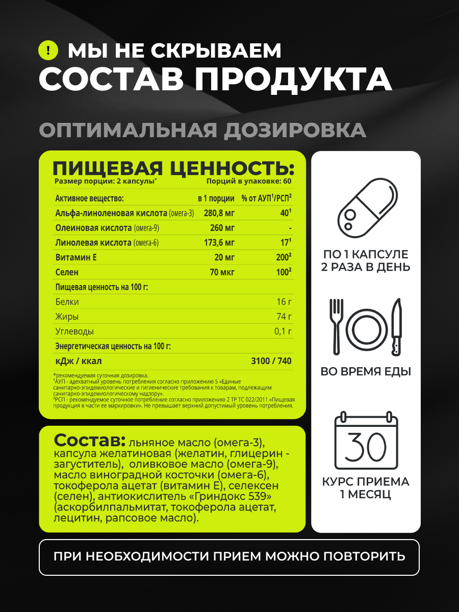 1WIN / Omega 3-6-9 с селеном и витамином Е, 120 капсул