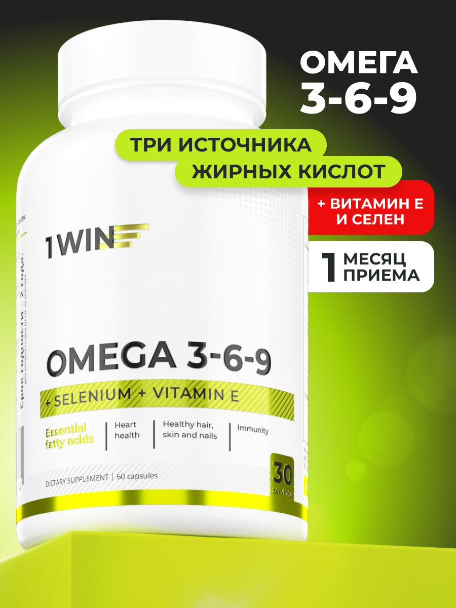 1WIN / Омега 3-6-9 с селеном и витамином Е, 60 капсул