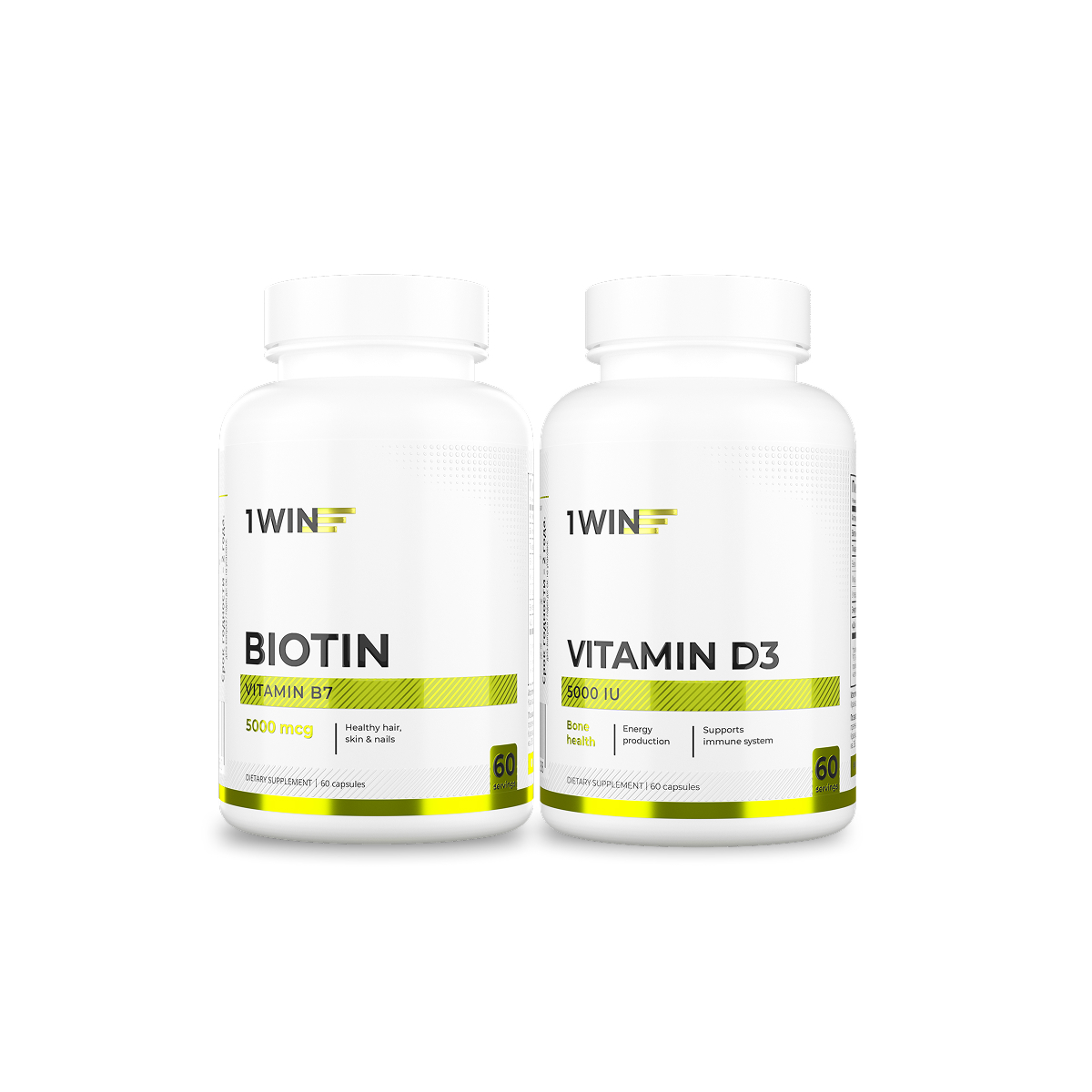 1WIN / Набор витаминов. Биотин 60 капсул + Витамин D3 5000 МЕ 60 капсул