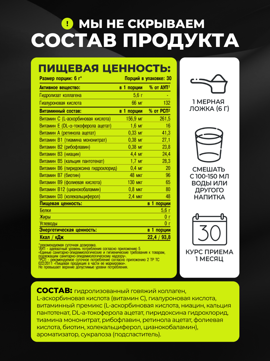 гидролизованный говяжий коллаген, аскорбиновая кислота,