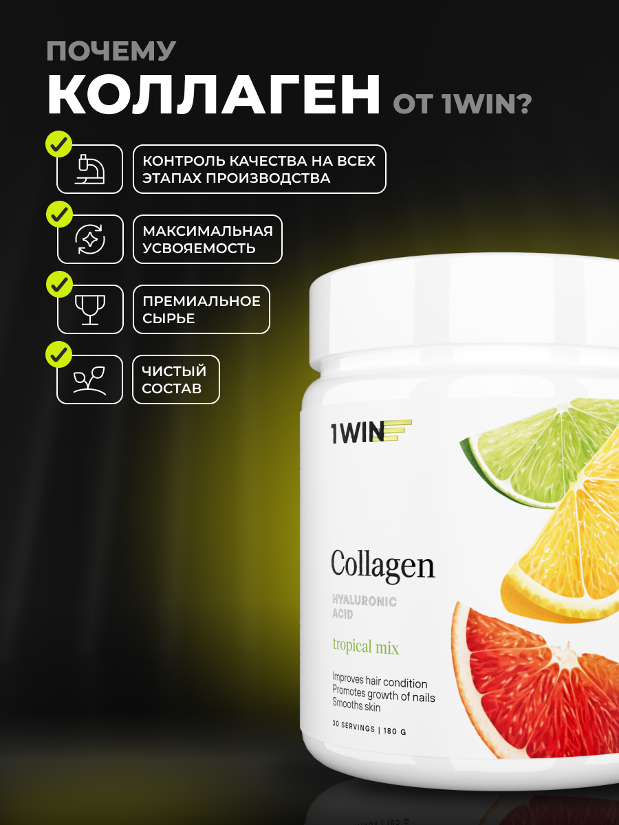 1WIN / Коллаген + Гиалуроновая кислота + Витамин С, Вкус: Тропический микс, курс на 1 месяц