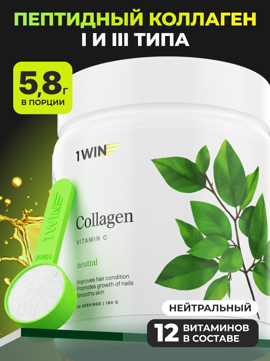 1WIN / Collagen + Vitamine C, Коллаген + Витамин С, Вкус: Нейтральный, курс на 1 месяц