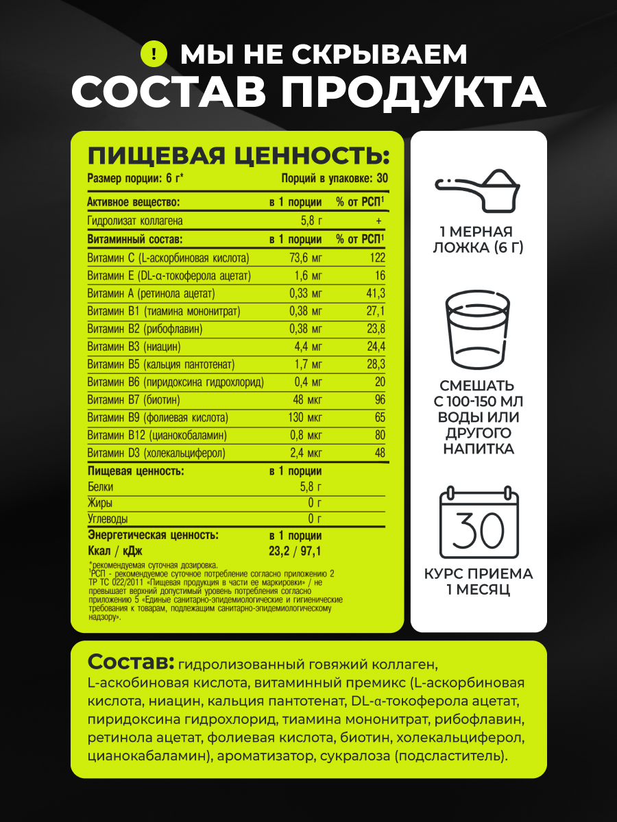 гидролизованный говяжий коллаген, аскорбиновая кислота,