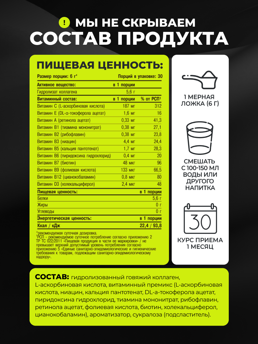 гидролизованный говяжий коллаген, аскорбиновая кислота,