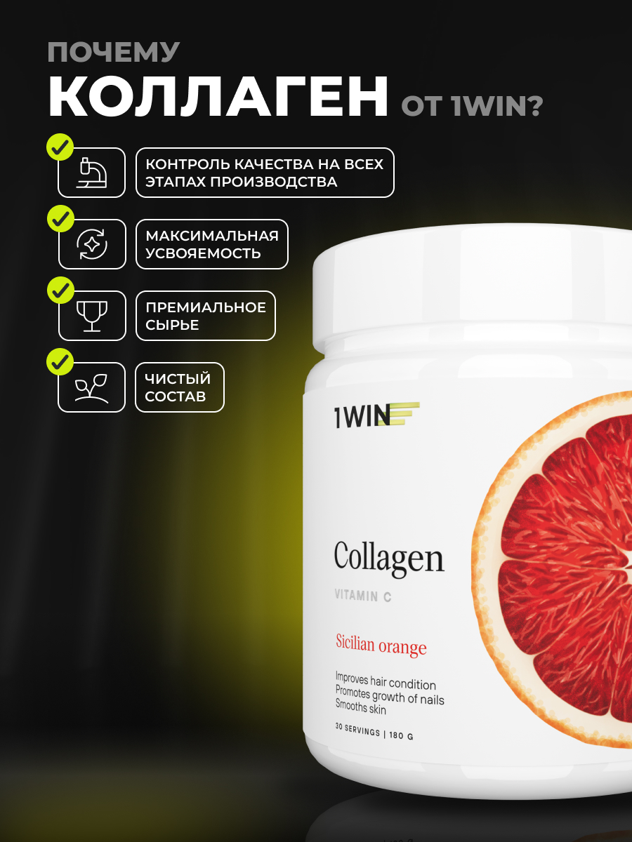 1WIN / Коллаген + Витамин С, Collagen + Vitamine C, Вкус: Сицилийский апельсин, курс на 1 месяц