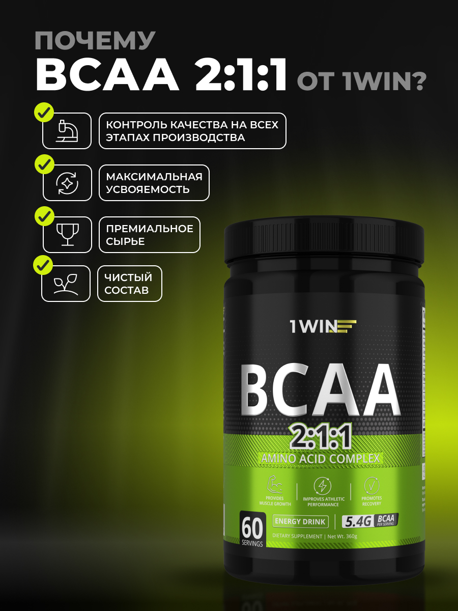 1WIN / BCAA 2:1:1 Вкус Энергетик, 360 гр, 60 порций