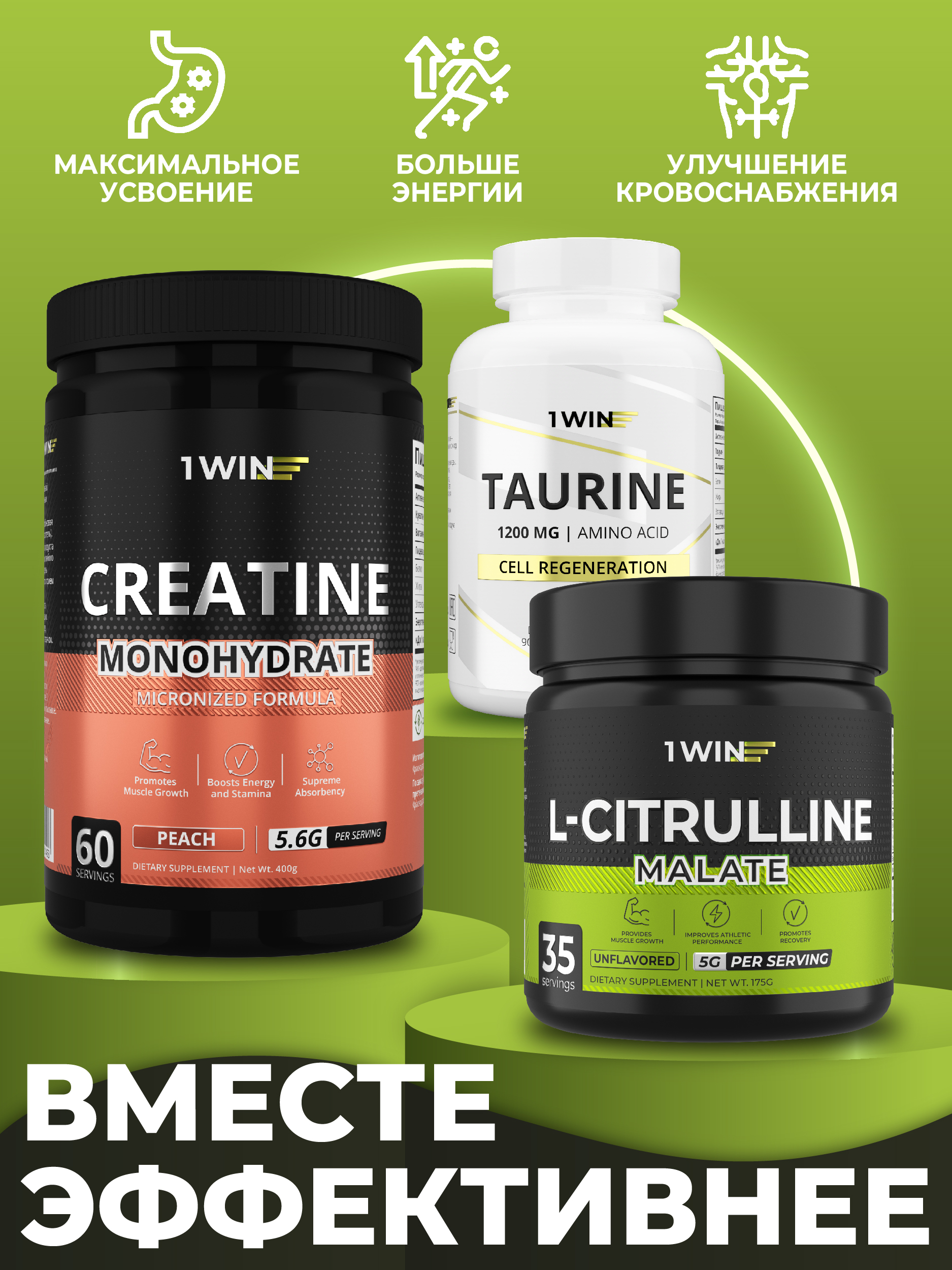 1WIN / L-цитруллин малат, 35 порций, 175 г