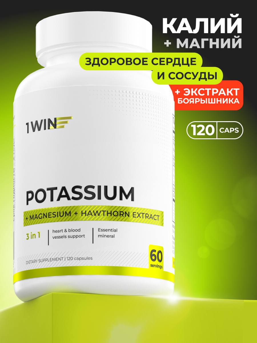 1WIN / Калий + Магний + экстракт боярышника, 120 капсул