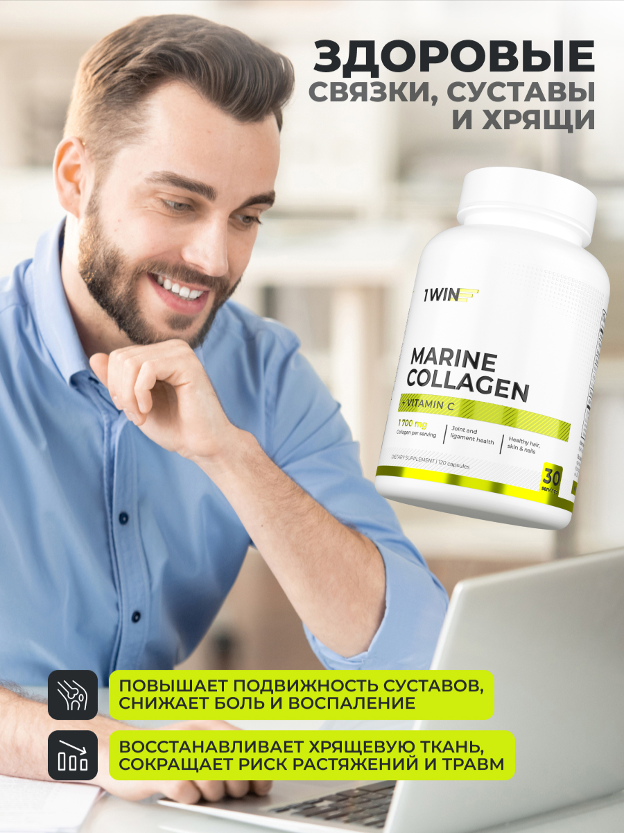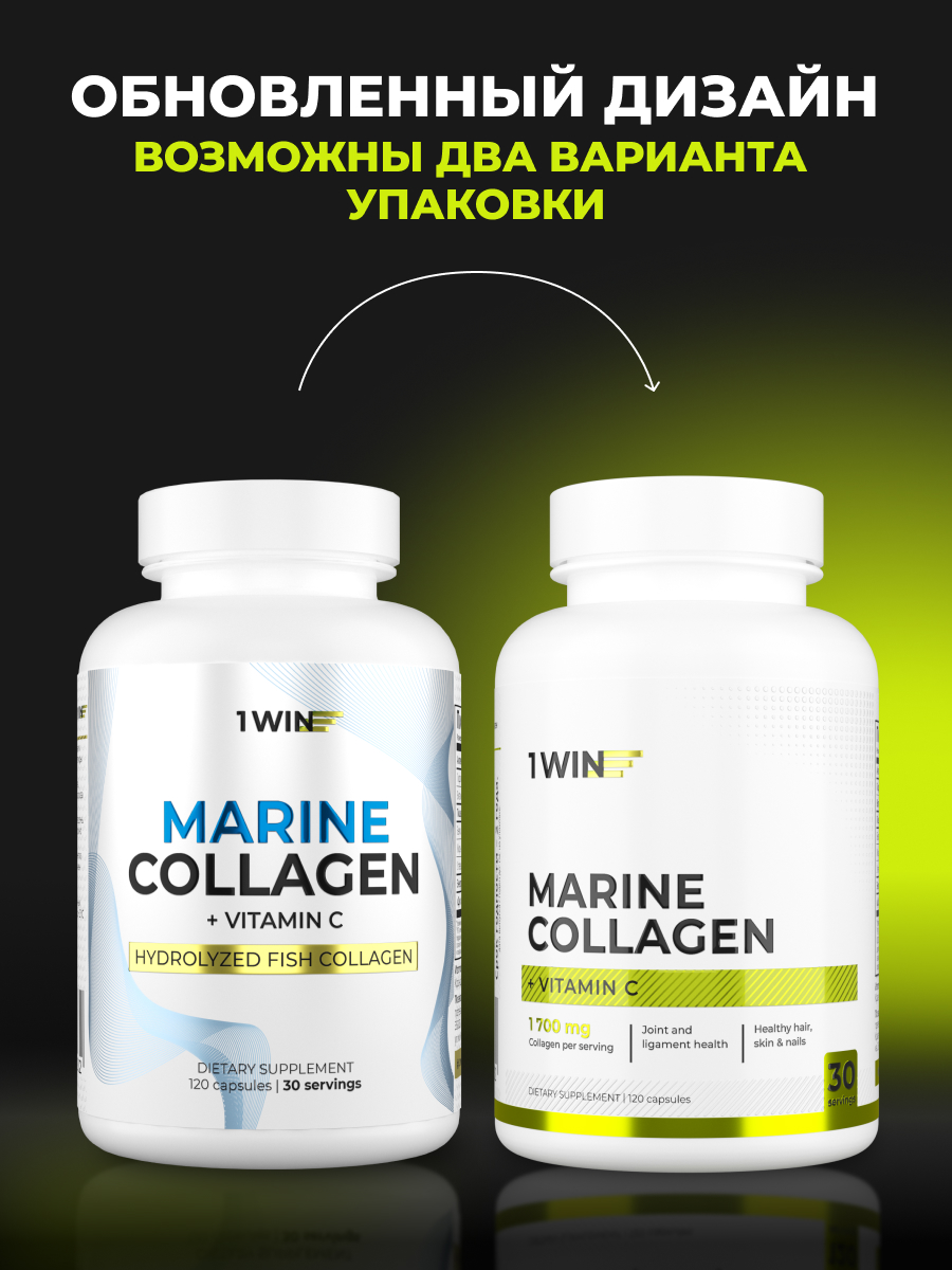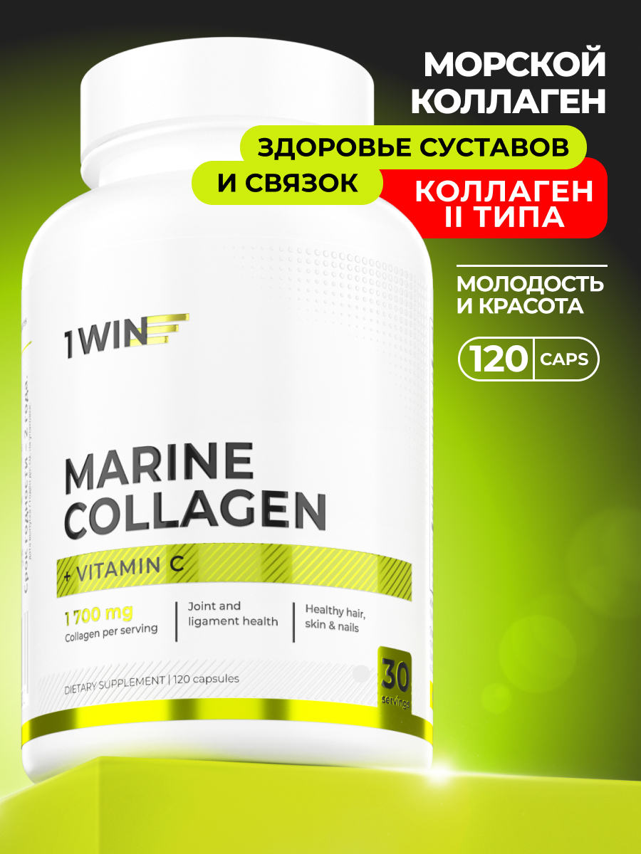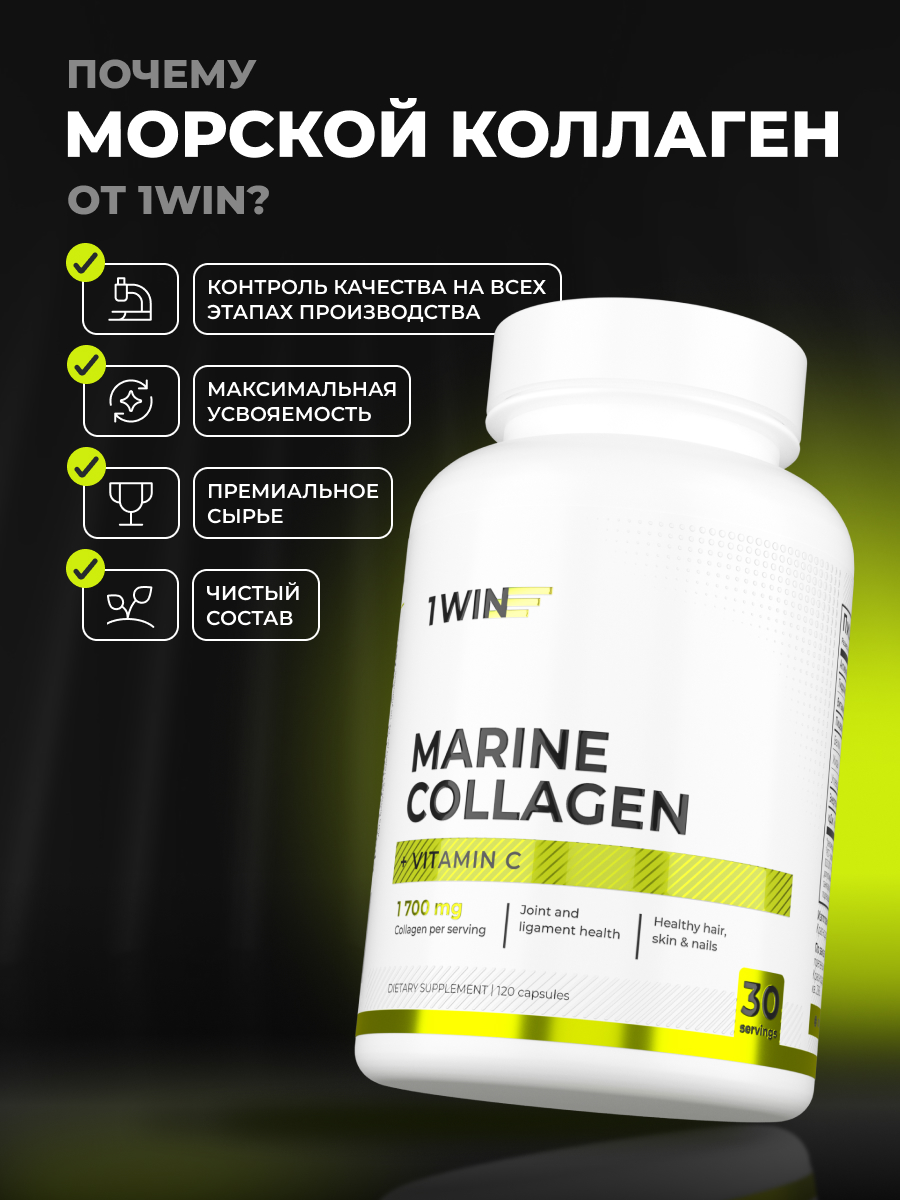 1WIN / Коллаген морской в капсулах + Витамин С, 120 капсул