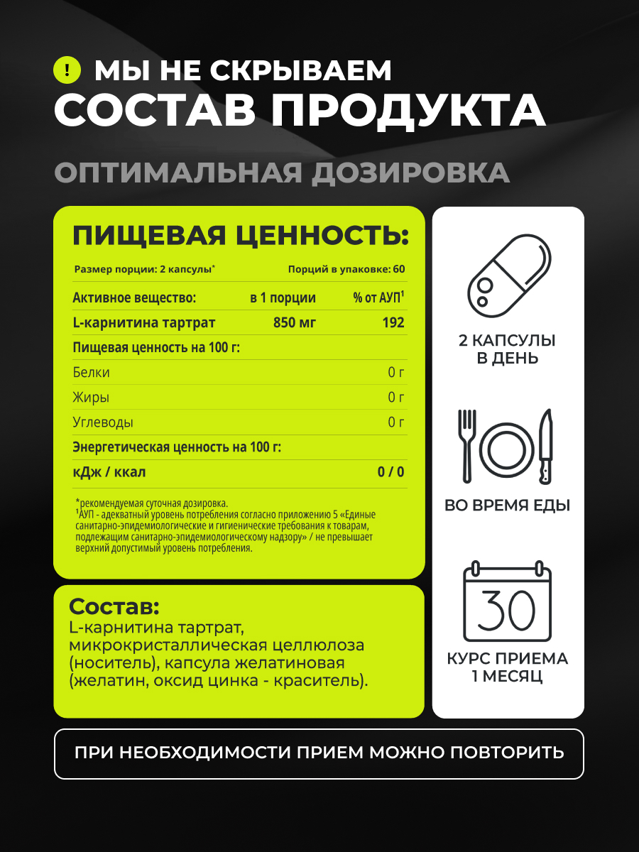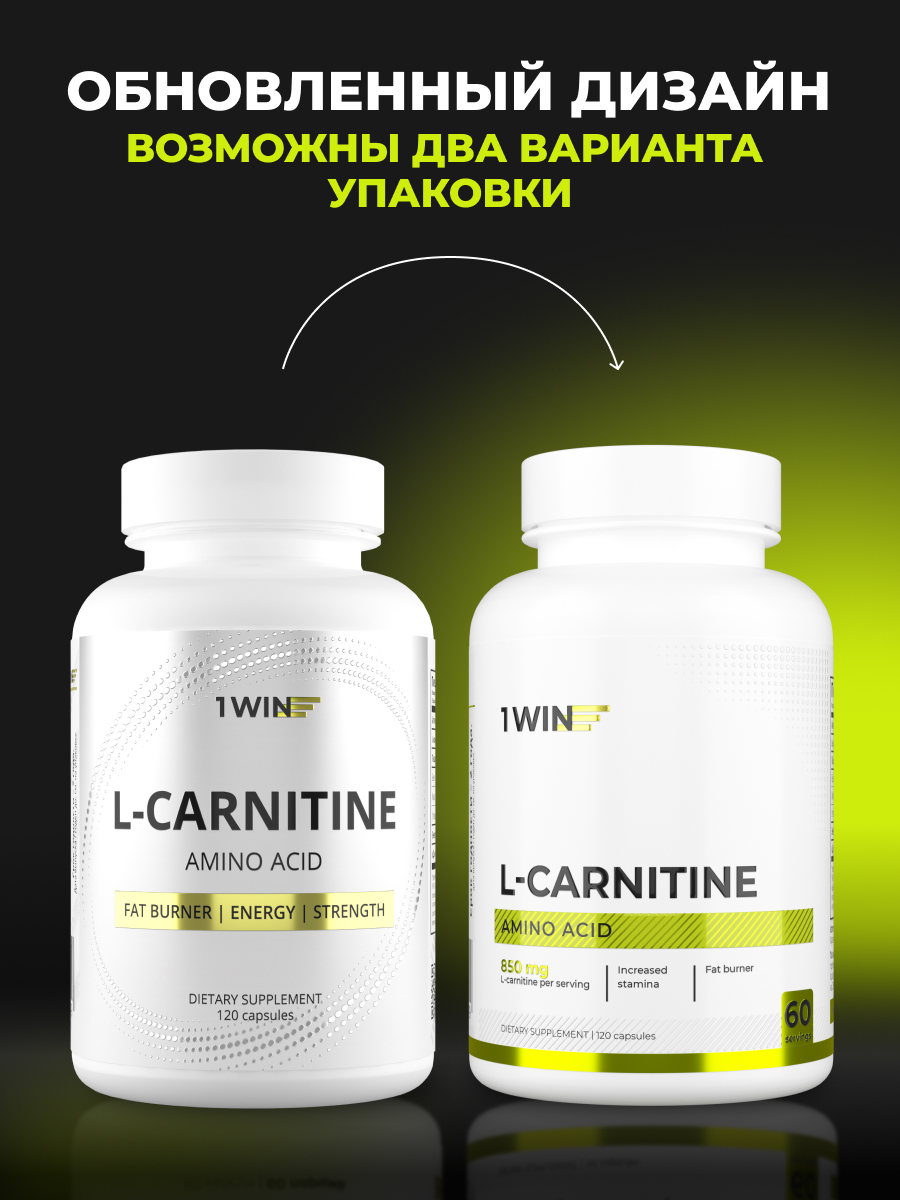 1WIN / L-карнитин / L-carnitine / Похудение /Сушка/ Жиросжигатель, 120 капсул