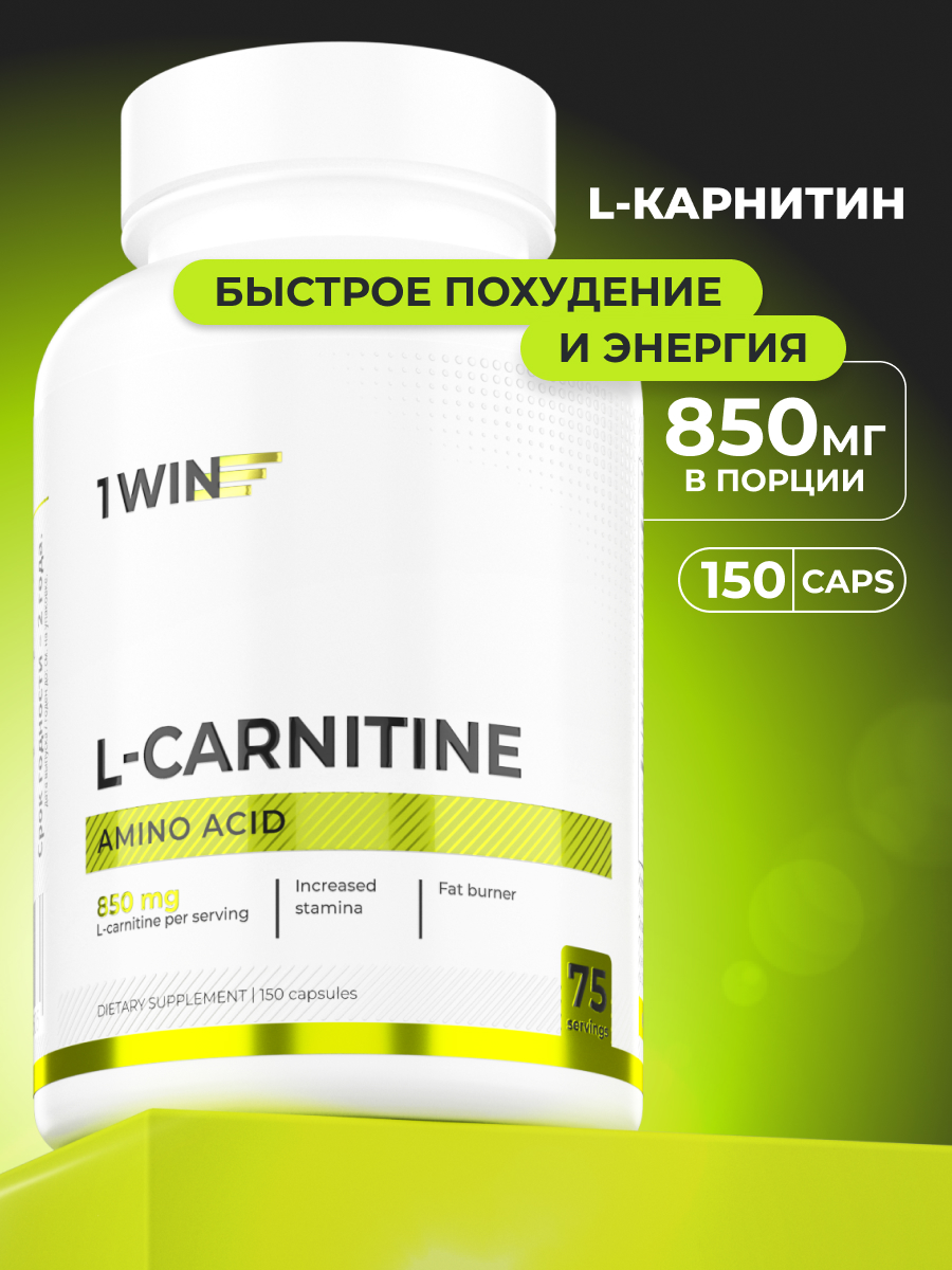 1WIN / L-карнитин / L-carnitine / Похудение /Сушка/ Жиросжигатель, 150 капсул