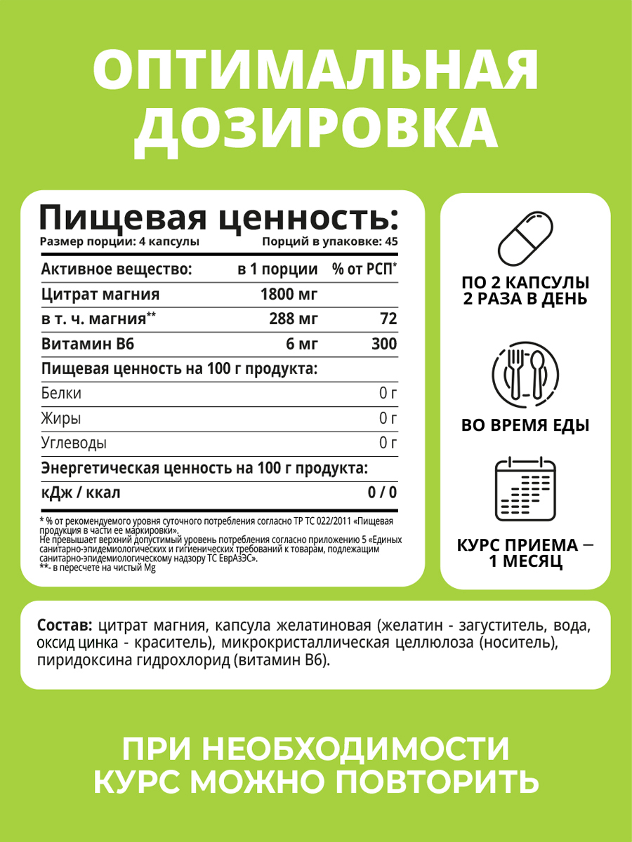 1WIN / Магния цитрат с витамином B6, 180 капсул