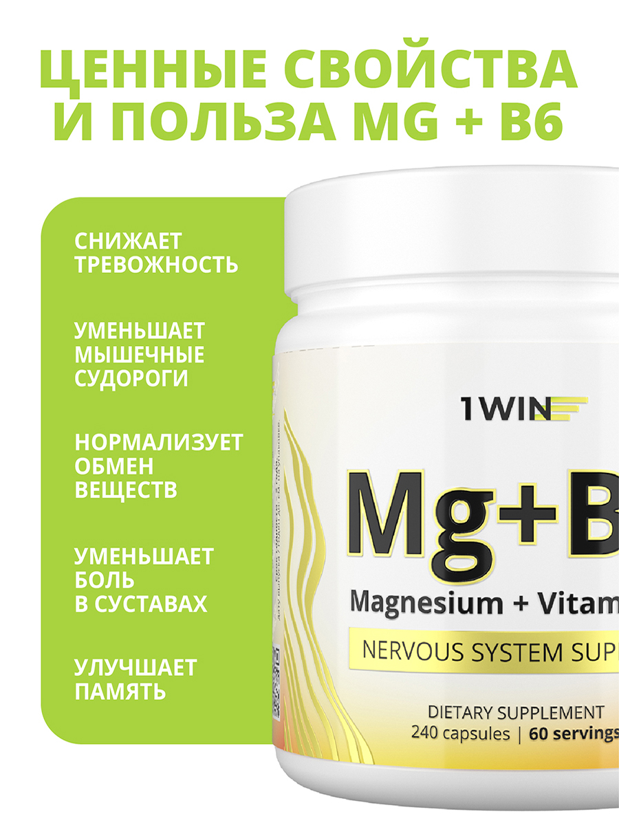 1WIN / Магния цитрат с витамином B6, 240 капсул