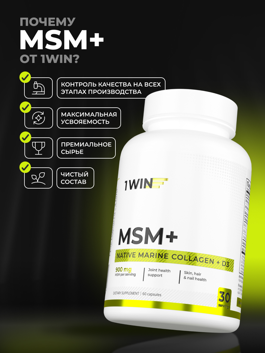 1WIN / MSM+, Метилсульфонилметан+, 60 капсул