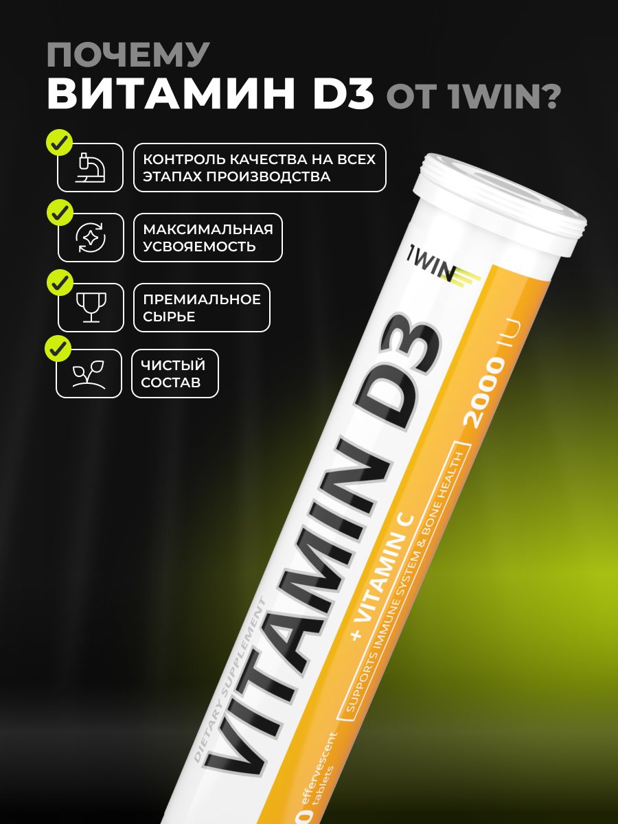 1WIN / Витамин D3 2000 МЕ, 20 шипучих таблеток