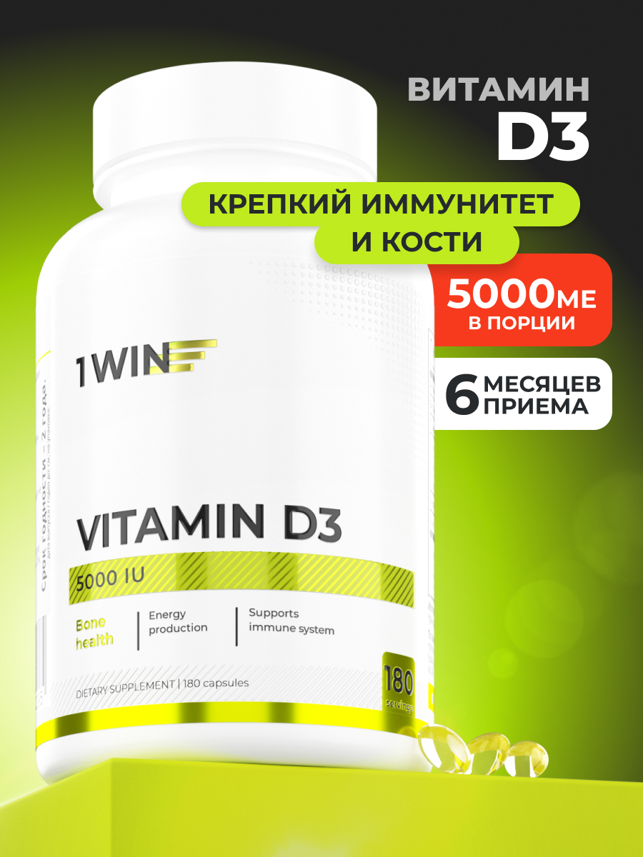 1WIN / Витамин D3 5000 ME, 180 капсул, БАД