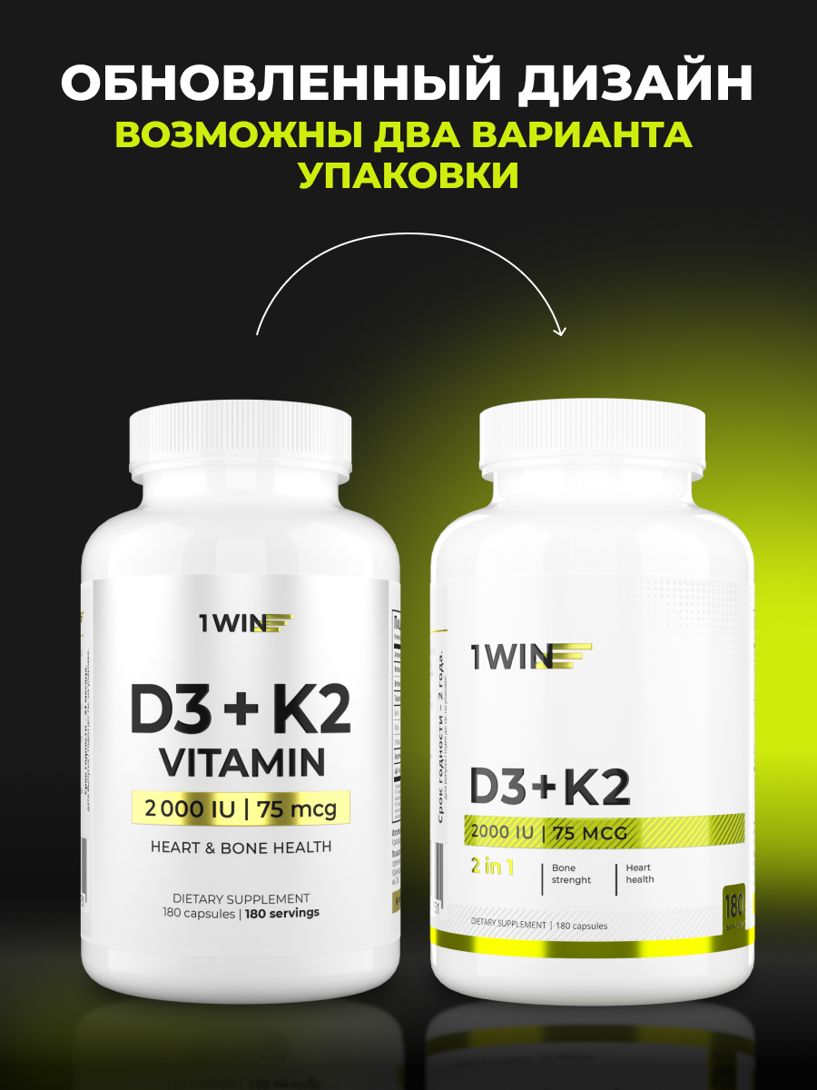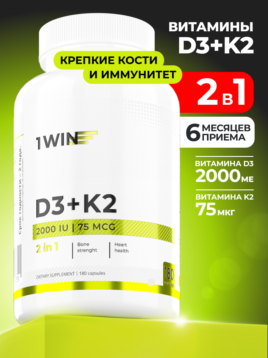 1WIN / Витамин К2+Д3 2000 МЕ, 180 капсул