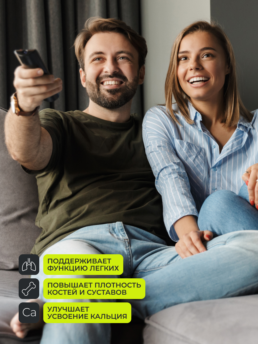 Витамин К2 — регулирует обменные процессы при распределении кальция в организме. Повышает плотность костной ткани, предотвращает остеопороз, замедляет естественный износ суставов и снижает риск переломов. Укрепляет сердечно-сосудистую систему, улучшает усвоение кальция и предотвращает его отложение в почках.