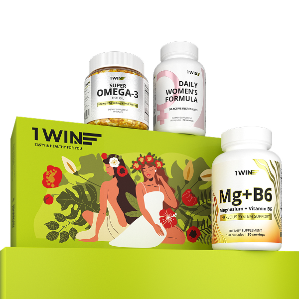 1WIN / Набор витаминов. Мультивитамины для женщин 90 капсул + Омега-3 900 мг 90 капсул + Магний В6 120 капсул