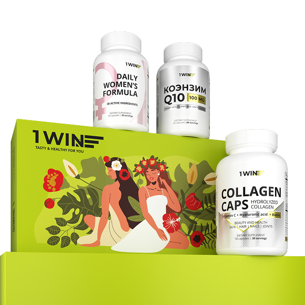 1WIN / Набор витаминов. Мультивитамины для женщин 90 капсул + коэнзим Q10 60 капсул +Коллаген с биотином и гиалуроновой кислотой 90 капсул