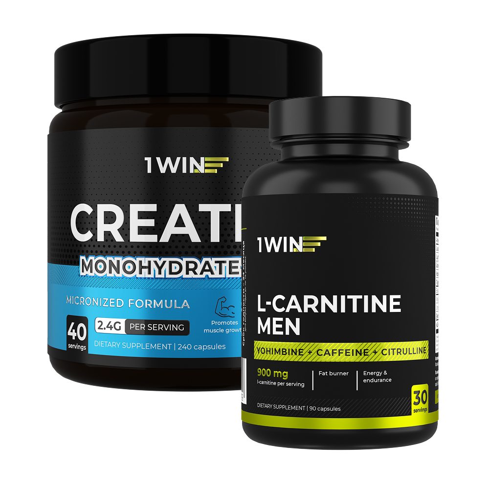 1WIN / Набор спортивных добавок  Креатин в капсулах, 240 капсул + L-карнитин MEN, 90 капсул
