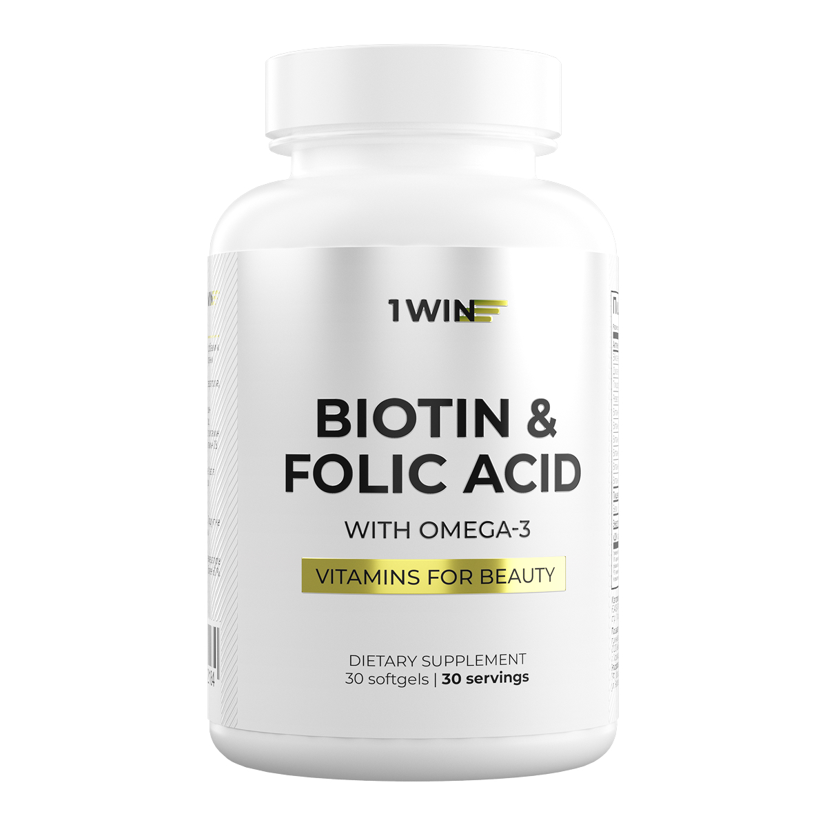 1WIN / Биотин и фолиевая кислота с Омега-3, 30 капсул