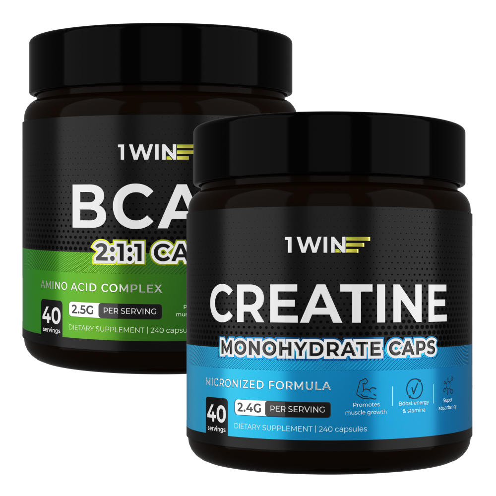 1WIN / Набор спортивных добавок. Креатин, 240 капсул + BCAA 2:1:1, 240 капсул