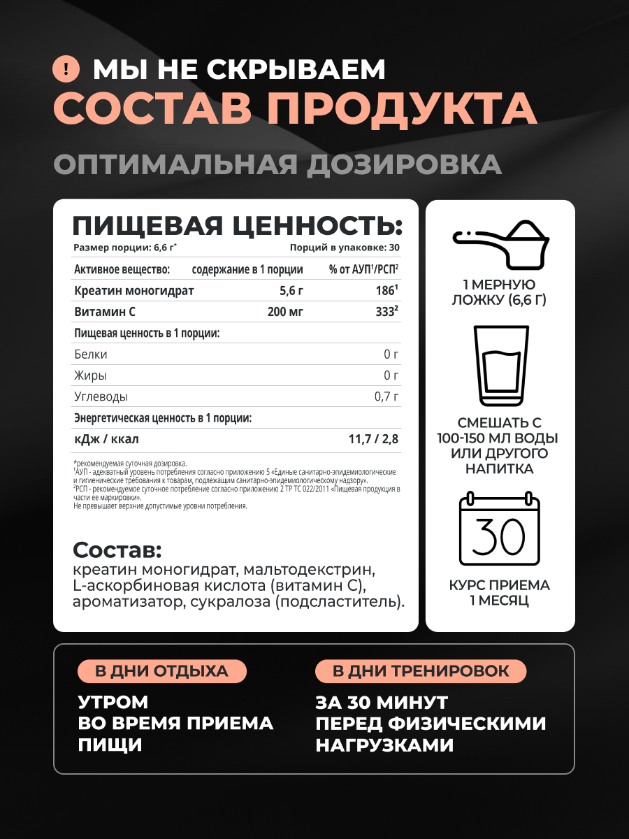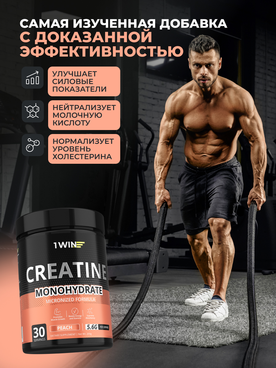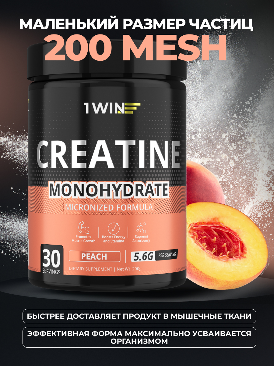 1WIN / Creatine Monohydrate, Креатин моногидрат, Вкус Персик, 30 порций