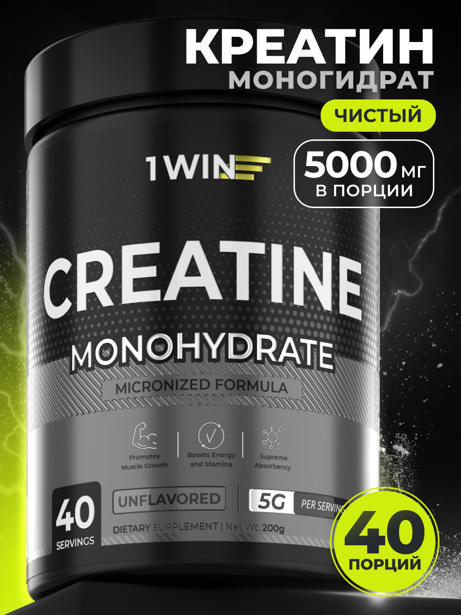 1WIN / Микронизированный креатин моногидрат. Без вкуса, 40 порций, 200 грамм