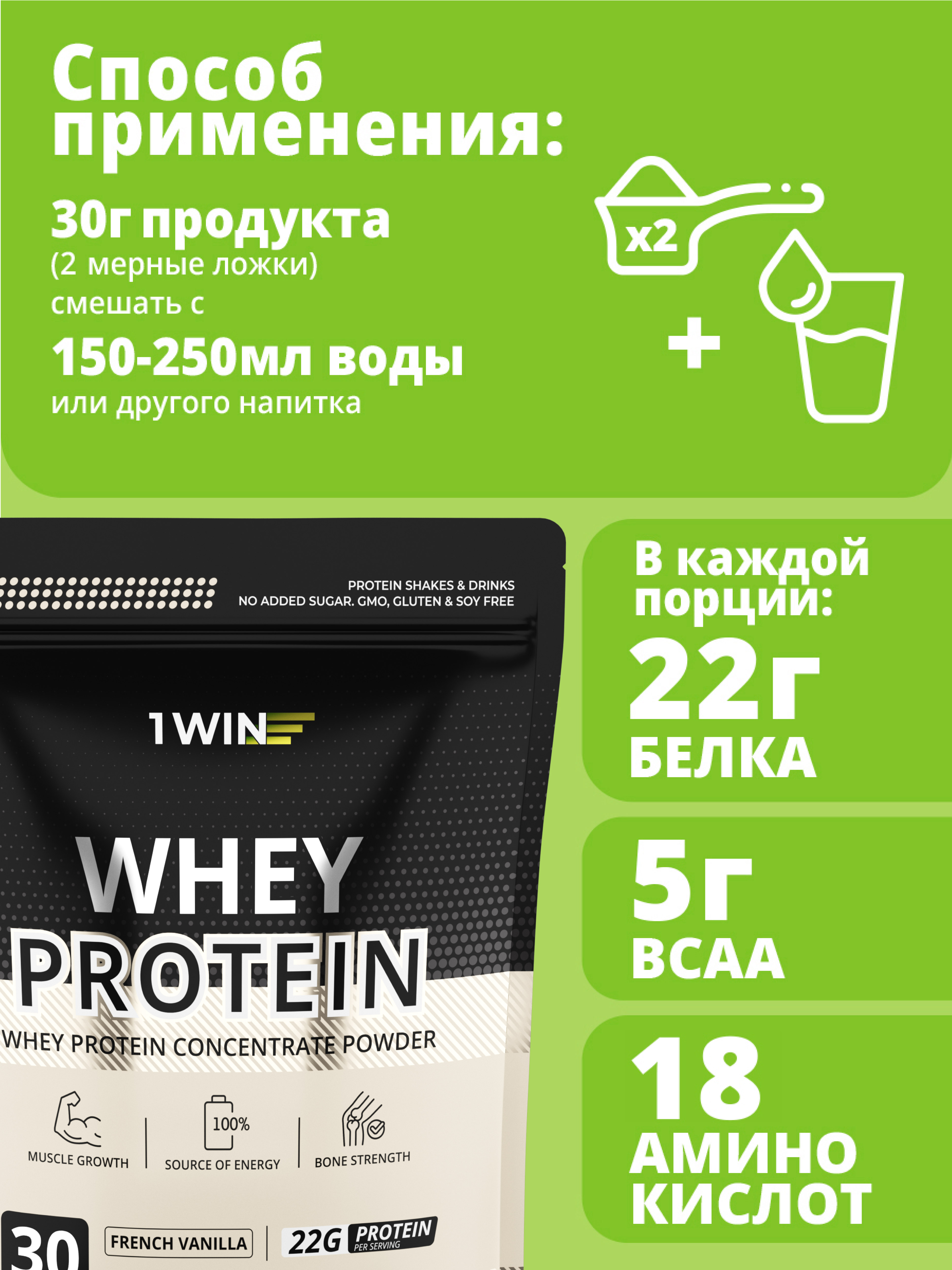 Протеин Whey Protein / Белковый коктейль для похудения, без сахара. Вкус: Ваниль. 900гр.